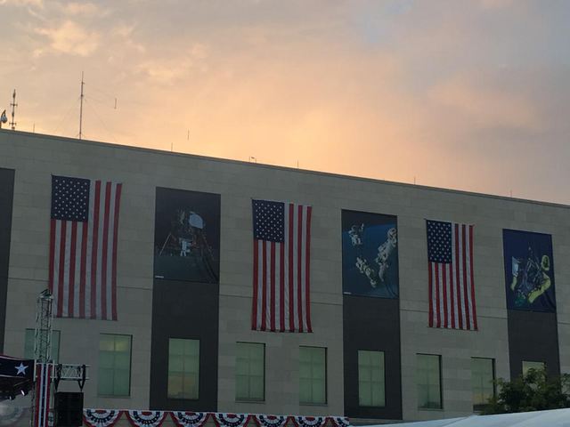 Partea de divertisment a fost completat de o trupă de cântăreţi din forţele navale americane. Invitaţii au avut parte şi proiecţii cu lasere pe clădirea ambasadei. Jocul de lasere a prezentat forme ale astronauţilor, ale Pământului şi ale misiunii pe Lună.