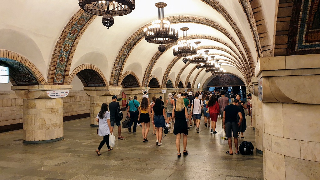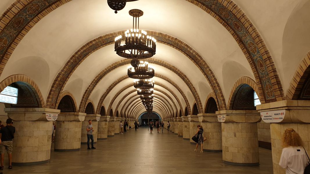 Kiev, capitala Ucrainei, are 2,6 milioane de locuitori și metroul, cu cele trei magistrale, este esențial într-un oraș cu un râu uriaș ce-l ”taie” în două și cu străzi în pantă. Chiar dacă cele mai frumoase stații nu se compară cu cele din Moscova, câteva sunt foarte elegante și au fost greu de construit din cauza geologiei complicate. Unele au candelabre superbe, altele au picturi, altele vin cu combinații inedite de culori. Metroul din Kiev are și porțiuni pe unde rulează la suprafață.