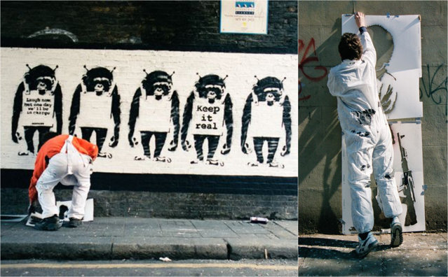 Banksy este celebru pentru desenele sale de tip graffiti realizate pe diverse clădiri importante, însoţite adeseori de comentarii cu tentă socială. Considerat un reprezentant al curentului street art, el este renumit pentru faptul că îşi tachinează publicul, dar şi autorităţile, iar lucrările sale sunt extrem de originale, făcându-i pe privitori să vadă lucrurile într-o cu totul altă lumină.