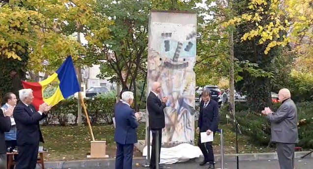 30 de ani de la căderea Zidului Berlinului: O bucată din zid, dezvelită şi amplasată în Parcul Academiei Române – FOTO, VIDEO