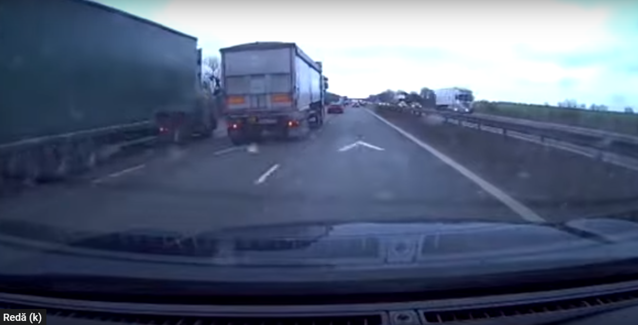 VIDEO. Momentul în care o bucată de gheaţă se desprinde de pe capota unui TIR şi trece prin parbrizul unei maşini