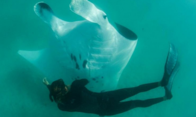 Un diavol de mare, vietate marină cunoscută ca Manta ray, a fost surprins apropiindu-se în mai multe rânduri de grupurile de scafandri de pe coasta Australiei...