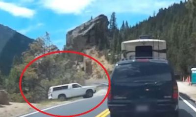 Maşina unui şofer din SUA a fost filmată în timp ce cădea într-o prăpastie, după ce bărbatul a oprit pe marginea drumului pentru a merge la...